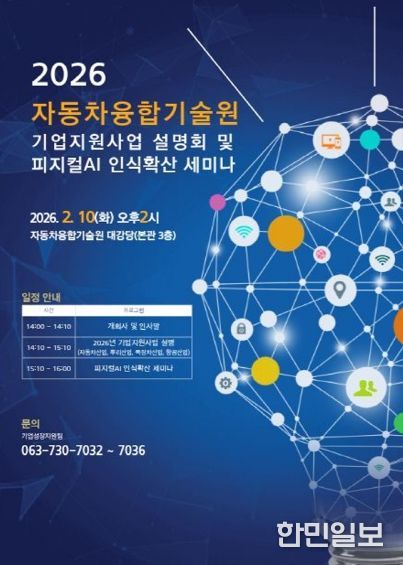 한민일보 서울포커스 임철현 기자 | 전북특별자치도는 도내 자동차·뿌리·특장·항공산업 등 주력산업의 경쟁력 강화를 위해 오는 10일 자동차융합기술원에서 ‘2026년 기업지원사업 설명회 및 피지컬AI 산업 인식확산 세미나’를 개최한다고 5일 밝혔다.