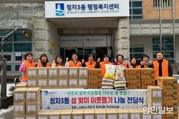 한민일보 서울포커스 진광성 기자 | 수원시 장안구 정자3동은 지난 4일 설 명절을 앞두고 이웃과 온정을 나누기 위한 ‘설맞이 이웃돕기 나눔 전달식’을 개최했다.