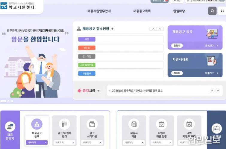광주서부교육지원청은 각 학교의 ▲채용 공고 ▲서류 접수 및 심사 ▲합격자 서류 학교 이송 등을 지원해 원활한 채용이 이뤄지고 인사행정의 공정성도 확보할 계획이다.