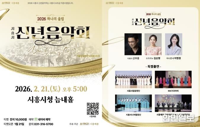 한민일보 서울포커스 유현민 기자 | 시흥시가 지원하고 (사)한국예술문화단체총연합회 시흥지회에서 주관하는 ‘2026 시흥시 신년음악회- 하나의 울림’이 오는 2월 21일 오후 5시, 시청 늠내홀에서 개최된다.