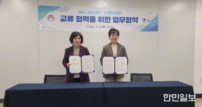 두 기관은 5일 버드내도서관에서 ‘신중년 맞춤형 라이프 솔루션 제공을 위한 업무협약’을 체결하고, 협력을 약속했다.