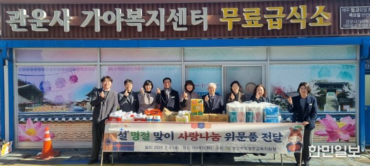 한민일보 서울포커스 임경복 기자 | 경상북도성주교육지원청은 2월 6일 설 명절을 맞아 가야복지센터(관운사 무료급식소)를 방문하여 사회복지시설 종사자들의 노고에 감사의 뜻을 전하고 위문품을 직접 전달했다.