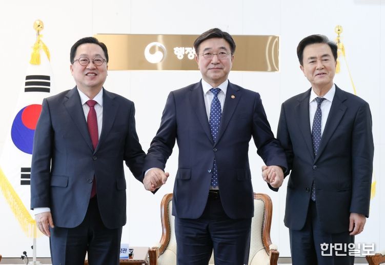 한민일보 서울포커스 김서윤 기자 | 이장우 대전시장은 6일 오후 4시 정부세종청사에서 윤호중 행안부 장관, 김태흠 충남지사와 간담회를 갖고, 대전․충남 행정통합 특별법의 원안 관철을 정부에 촉구하며 관련 건의문을 공식 전달했다.