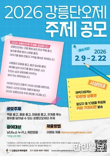 한민일보 서울포커스 임경복 기자 | (사)강릉단오제위원회는 2026 강릉단오제 주제 공모를 오는 2월 9일부터 2월 22일까지 진행한다.