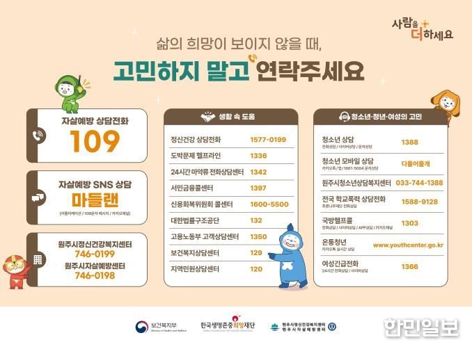 한민일보 서울포커스 임경복 기자 | 원주시자살예방센터는 시민의 소중한 생명을 지키기 위해 자살예방 사업을 적극 추진하고 있다.
