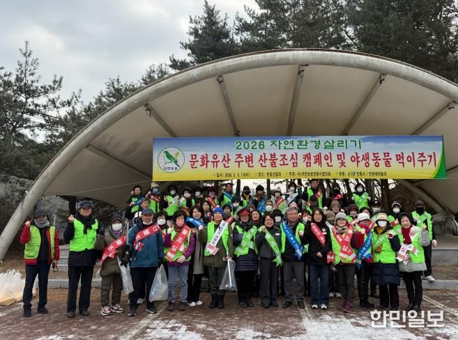 한민일보 서울포커스 김봉순 기자 | 자연보호중앙연맹 안동시협의회는 2월 5일, 서후면 천등산 일원에서 자연보호협의회 회원 등 90여 명이 참석한 가운데 ‘2026년 자연환경 살리기 행사’를 실시했다.