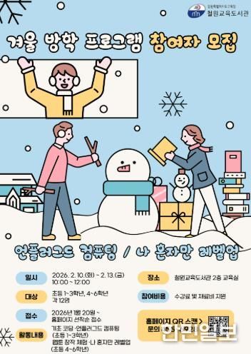 한민일보 서울포커스 곽중희 기자 | 철원교육도서관은 2026년 겨울방학을 맞아 초등학생을 대상으로 디지털 창의 교육 프로그램을 운영한다.