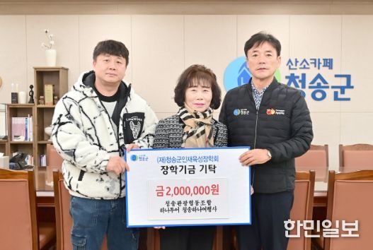 한민일보 서울포커스 김봉순 기자 | 청송군은 지난 6일 청송관광&하나투어·하나여행사(대표 권영선)가 지역 인재 육성을 위해 장학금 200만 원을 기탁했다고 밝혔다.