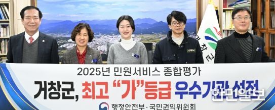 한민일보 서울포커스 김서윤 기자 | 거창군은 국민권익위원회·행정안전부 공동 주관한 ‘2025년 민원 서비스 종합평가’에서 최고 등급인 ‘가등급’에 선정돼 전국 최고 수준의 민원 서비스를 인정받았다.