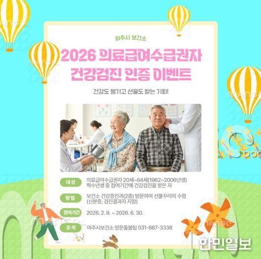 한민일보 서울포커스 전희주 기자 | 여주시보건소 건강증진과는 의료급여수급권자의 건강을 지키고 심뇌혈관질환을 예방하기 위해 2026년 6월 30일까지 건강검진을 완료한 분들을 대상으로 ‘건강꾸러미 제공 이벤트’를 진행한다.