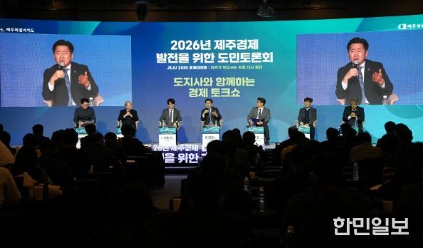 제주도와 제주상공회의소는 9일 오후 2시 한라컨벤션센터에서 ‘2026년 제주경제 발전을 위한 도민토론회’를 열었다.