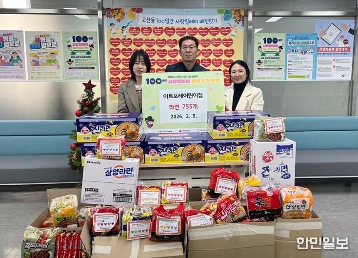 이날 전달식에는 아트포레어린이집 원장과 교사가 참석해 아이들이 손수 모아온 라면을 전달하는 뜻깊은 시간을 가졌다. 라면은 고산동 지역 내 독거노인, 저소득 가구 등 도움이 필요한 이웃들에게 전달될 예정이다.