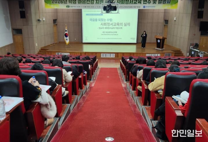 한민일보 서울포커스 임경복 기자 | 광주시교육청은 9~10일 광주창의융합교육원 대강당에서 교원을 대상으로 ‘2026 학생 마음건강 지원사업 안내 및 사회정서교육 설명회’를 개최했다.
