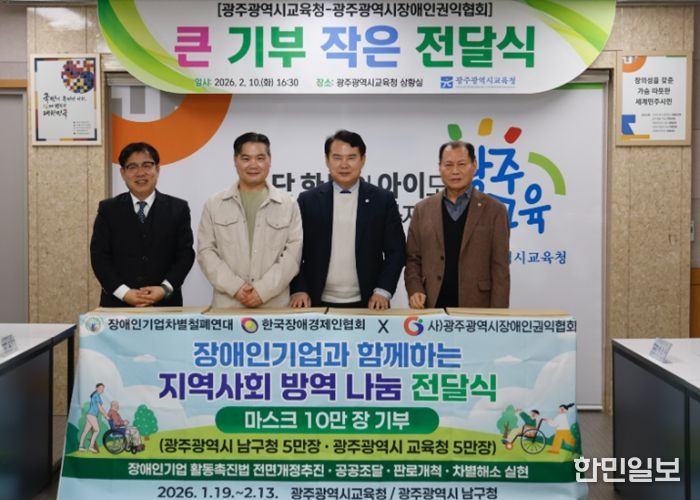 광주시장애인권익협회 김선욱 회장은 “이번 기부가 학생들의 건강을 지키는 데 작은 힘이 되길 바란다”며 “지역사회와 함께하는 나눔 활동을 꾸준히 펼치겠다”고 전했다.