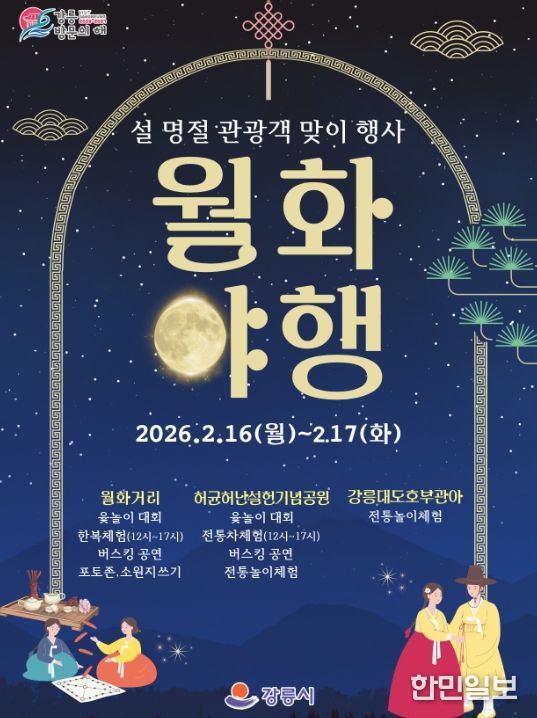 한민일보 서울포커스 임경복 기자 | 강릉시는 설 명절을 맞아 고향을 찾는 귀성객과 관광객들에게 풍성한 볼거리와 즐길거리를 제공하기 위해 오는 16일부터 17일까지 양일간 설 맞이 행사'월화야행'을 개최한다.