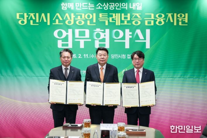 당진시는 11일 당진시청 접견실에서 오성환 당진시장과 오주현 NH농협은행 충남본부장, 조소행 충남신용보증재단 이사장이 참석한 가운데 소상공인 특례보증 금융지원 업무협약을 체결하고, 지역 소상공인을 위한 금융지원 규모를 추가로 확충했다고 밝혔다.