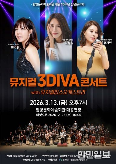 한민일보 서울포커스 김서윤 기자 | 함양문화예술회관은 오는 3월 13일 오후 7시 신년 음악회 ‘뮤지컬 3DIVA’ 콘서트를 개최한다.