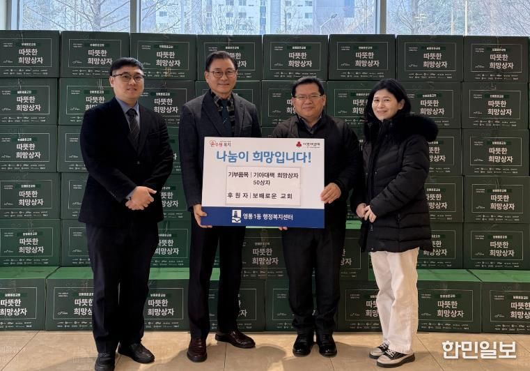 한민일보 서울포커스 진광성 기자 | 수원특례시 영통구 영통1동은 지난 10일 보배로운 교회가 설 명절을 맞아 관내 어려운 이웃에게 전달해달라며 ‘기아대책 희망상자(생활필수품 키트)’ 50박스를 영통1동 행정복지센터에 기탁했다고 밝혔다.