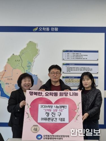 정진구 대표는 올해 오학동 방위협의회 위원으로 새롭게 위촉되어 지역사회 활동을 시작했으며, 이번 성금 기탁을 통해 이웃 사랑 실천에 앞장섰다. 기탁된 성금은 관내 저소득층 및 복지 사각지대에 놓인 이웃을 돕는 데 사용될 예정이다.