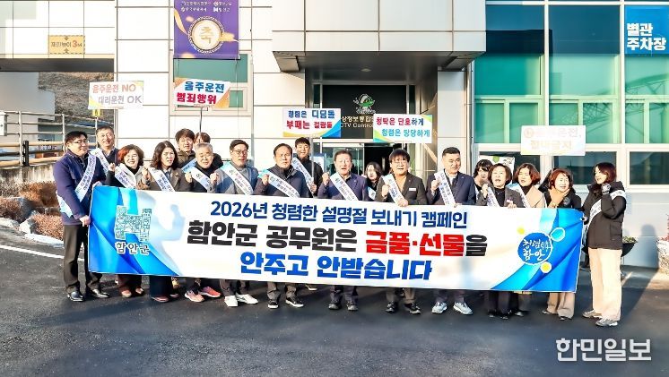 한민일보 서울포커스 김서윤 기자 | 함안군은 다가오는 설 명절을 맞아 공정하고 청렴한 사회 문화 조성을 위해 2월 10일부터 12일까지 3일간 ‘설 명절 선물 안주고 안받기’ 및 ‘음주운전 근절’ 캠페인을 실시한다고 밝혔다.