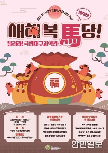 한민일보 서울포커스 김봉순 기자 | 국립대구과학관은 2026년 병오년 새해를 맞이하여 설 맞이 과학문화 행사를 2월 14일부터 18일까지 과학관 일대에서 개최한다.