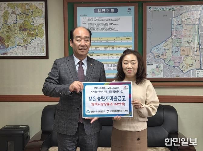 한민일보 서울포커스 황준형 기자 | 평택시 신장2동은 지난 11일 MG송탄새마을금고가 지역사회 상생과 나눔 실천을 위해 취약계층을 대상으로 평택사랑상품권(일백만 원)을 기부했다고 밝혔다.