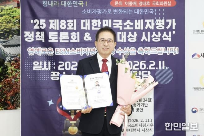 한민일보 서울포커스 곽중희 기자 | 지난 11일, 국회 도서관에서 열린 2026 제8회 ESM대한민국소비자평가우수대상 정책토론회 및 시상식에서 광주시의회 허경행 의장이 지방자치/행정 부문 대상을 수상했다.