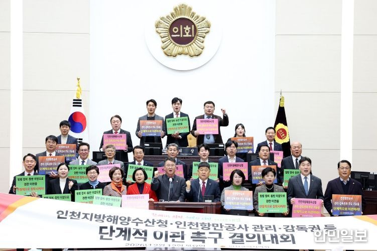 한민일보 서울포커스 유창렬 기자 | 인천광역시의회가 정부를 향해 “인천지방해양수산청과 인천항만공사의 관리·감독권 등 주요 기능을 인천광역시로 단계적으로 이관하라”고 촉구했다.