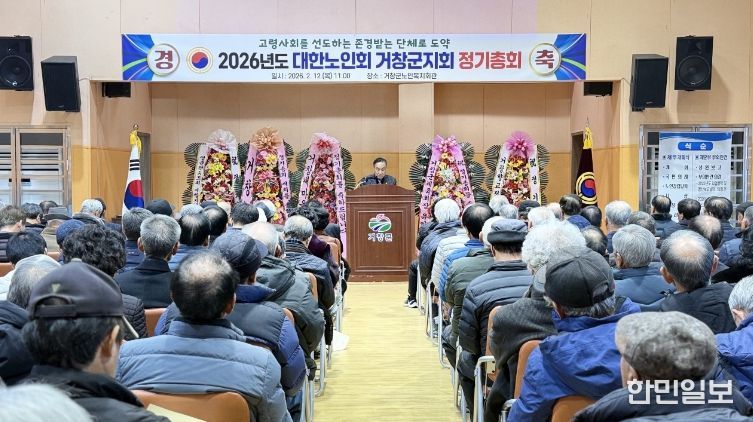 한민일보 서울포커스 김서윤 기자 | (사)대한노인회 거창군지회(회장 강창남)는 12일, 거창군 노인복지회관 3층 대강당에서 김현미 거창부군수, 이재운 거창군의회 의장을 비롯한 군의원과 대의원 등 내빈과 회원 약 250명이 참석한 가운데 2026년 정기총회를 개최했다.