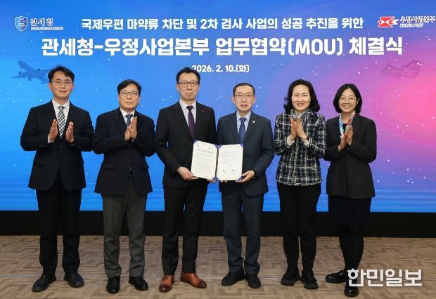한민일보 서울포커스 임경복 기자 | 관세청과 과학기술정보통신부 우정사업본부(본부장 직무대리 곽병진)는 2월 10일 서울세관에서 국제우편을 통한 마약류 반입을 원천 차단하기 위해 '국제우편 마약류 차단 및 2차 검사 사업의 성공 추진을 위한 업무협약(MOU)'을 체결했다.