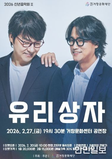 한민일보 서울포커스 김서윤 기자 | (재)거창문화재단(이사장 구인모 거창군수)은 오는 27일 오후 19시 30분에 거창문화센터 공연장에서 감성듀오 유리상자와 함께하는 ‘2026 신년음악회Ⅱ’를 개최한다.