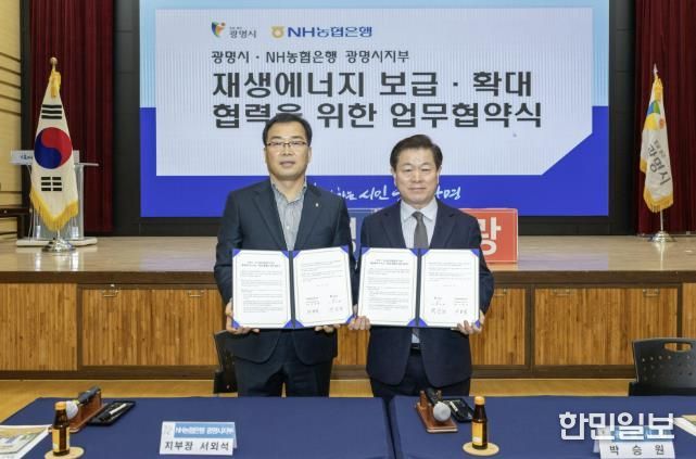 시는 13일 시청 대회의실에서 NH농협은행 광명시지부와 ‘재생에너지 보급·확대 및 사회공헌 연계 업무협약’을 체결했다.