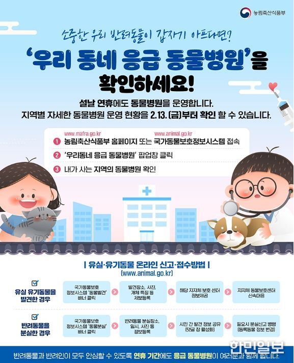 반려동물과 반려인이 모두 안심할 수 있도록 연휴 기간에도 응급 동물병원이 여러분과 함께 합니다.