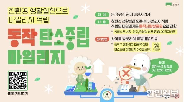 한민일보 서울포커스 곽중희 기자 | 동작구는 온실가스 감축과 탄소중립 실현에 기여하기 위해 ‘2026년 동작 탄소중립 마일리지 제도’를 운영한다고 밝혔다.