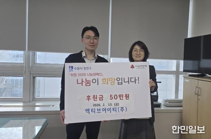 한민일보 서울포커스 진광성 기자 | 수원시 장안구에 위치한 엑티브아이티(주)가 지난 13일, 설 명절을 맞아 후원금 50만원을 장안구청에 기부했다.