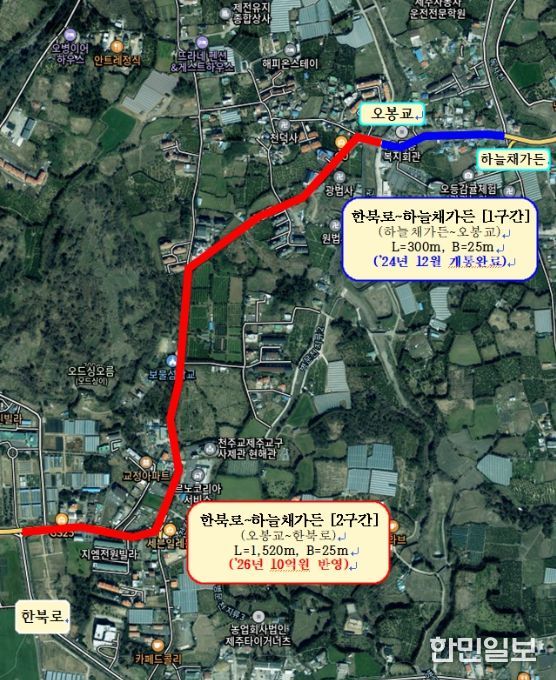 한민일보 서울포커스 김다남 기자 | 제주시는 아라동지구~오등동 교통체증 해소를 위해 ‘한북로~하늘채가든(대로3-1-25) 도로확장사업(2구간)’을 2030년 준공 목표로 추진한다.