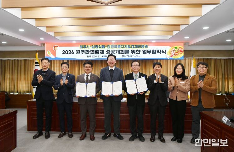 한민일보 서울포커스 임경복 기자 | 원주시는 ‘2026 원주라면축제’의 성공적인 개최를 위해 19일 오후 2시, 시청 7층 투자상담실에서 삼양식품, 강원특별자치도경제진흥원과 업무협약을 체결했다.