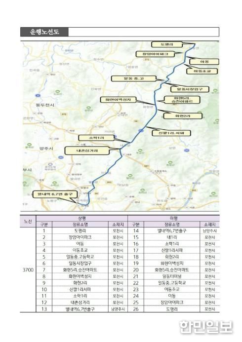 한민일보 서울포커스 심기옥 기자 | 포천시는 오는 3월 4일부터 경기도 광역 공공버스 신규 노선인 3700번(도평리–별내역)을 정식 운행한다고 밝혔다.
