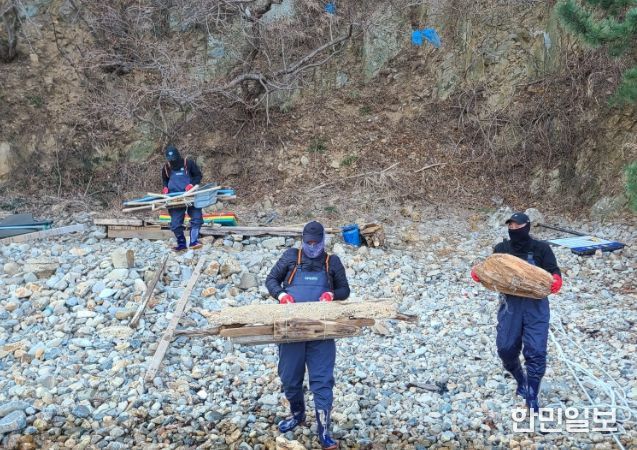 한민일보 서울포커스 기자 | 울산 동구는 2월 20일 오전 대왕암공원 출렁다리 밑 해안 일대에서 해양쓰레기를 수거하는 해안 정비 활동을 했다.