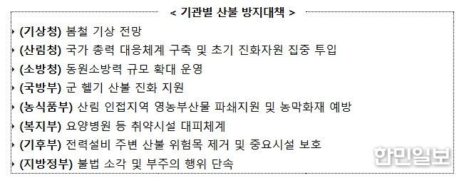 한민일보 서울포커스 최성훈 기자 | 행정안전부 2월 20일 김광용 재난안전관리본부장 주재로 ‘봄철 산불방지 관계기관 대책회의’를 개최*했다.