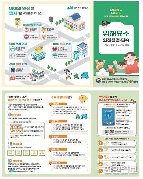 정부는 매년 개학을 앞두고 초등학교 주변 위해요소를 점검해 왔으며, 지난해에는 ▴불법광고물 45만여 건 ▴교통안전 위해요소 19만여 건 ▴청소년 유해환경 1만 7천여 건 ▴식품·위생 관리 미비 1만 6천여 건을 포함해 총 67만여 건의 위해요소를 단속·정비했다.