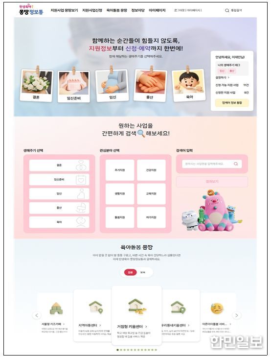 「탄생육아 몽땅정보통」은 2023년 9월 오픈 이후 현재까지 누적 방문자 335만 명을 기록하고, 사업 신청을 통해 약 30만 명에게 혜택을 지원하며 예비 부모와 양육자에게 명실상부 필수 사이트로 자리매김했다.