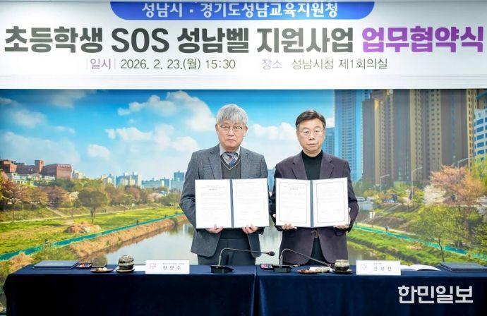 한민일보 서울포커스 임경복 기자 | 성남시는 2월 23일 성남교육지원청과 ‘초등학생 대상 긴급 구조 요청(SOS) 성남벨 지원 사업’ 추진을 위한 업무 협약을 했다.