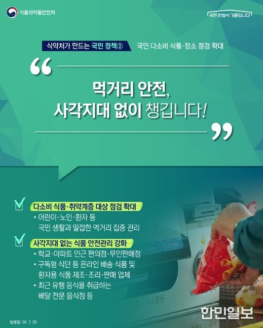 한민일보 서울포커스 임경복 기자 | 식약처가 만드는 국민 정책- 국민 다소비 식품·장소 점검 확대