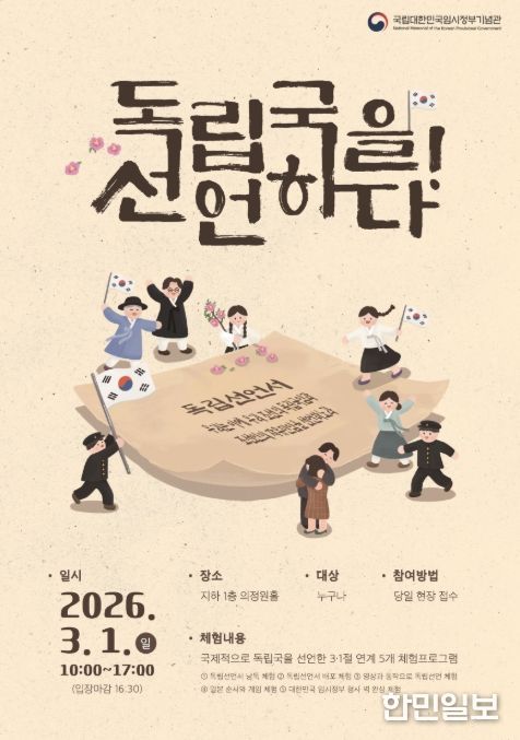 한민일보 서울포커스 박용남 기자 | 국가보훈부는 제107주년 3·1절을 맞아 3·1운동에서 독립선언 과정을 체험할 수 있는 체험프로그램과 문화행사가 국립대한민국임시정부기념관(서울 서대문구)에서 다채롭게 펼쳐진다고 밝혔다.