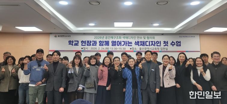 한민일보 서울포커스 임경복 기자 | 울산광역시교육청은 24일 공간 재구조화·공간 혁신 대상 학교 교직원, 교육시설 업무 담당자 60여 명을 대상으로 ‘공간 재구조화 색채디자인 연수’를 열었다.