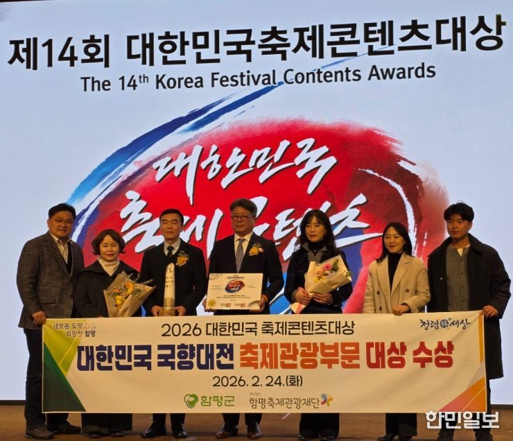 함평군은 “이날 오후 서울 피스앤파크 컨벤션센터에서 열린 ‘2026 대한민국 축제 콘텐츠 대상’에서 함평군이 축제관광부문 대상을 수상했다”고 24일 밝혔다.
