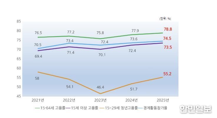 군에 따르면, △OECD 기준 15~64세 고용률 78.8%(지난해 하반기 比 0.9↑) △15세 이상 전체 고용률 73.5%(지난해 하반기 比 1.1↑) △청년고용률 55.2%(지난해 하반기 比 3.5↑) △경제활동참가율 74.5%(지난해 하반기 比 0.9↑)로 각 분야에서 도내 1위를 기록했다.
