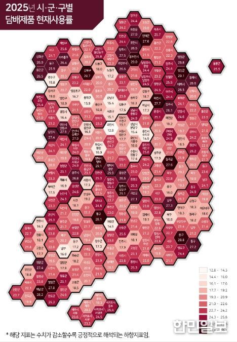 이번 발간되는 통계집 '2025 지역건강통계 한눈에 보기'에는 건강행태, 만성질환 이환 등 주요 46개 건강지표에 대한 전국, 시‧도, 시‧군‧구 단위 상세 현황과 연도별 변화 양상을 보다 상세히 확인할 수 있다.