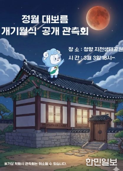 한민일보 서울포커스 임경복 기자 | 청양군 칠갑산천문대가 오는 3월 3일 정월대보름을 맞아, 36년 만에 찾아오는 희귀 천문 현상인 ‘대보름 개기월식’ 특별 교육 프로그램을 운영한다.